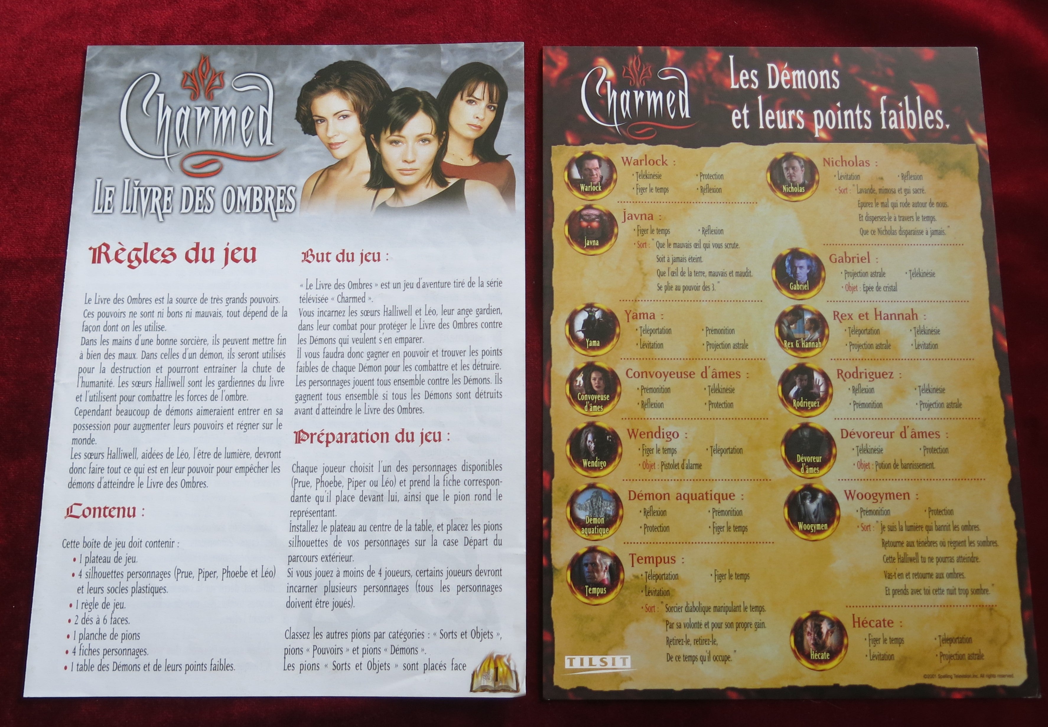 Charmed : Le Livre des Ombres est le premier jeu de société officiel de la série télévisée Charmed à être publié. Il a été développé par Fox Consumer Products et la société française Tilsit Editions, et a été publié en 2001 par Tilsit, Clash of Arms et Fox dans le monde entier. Le jeu est vaguement basé sur la première saison de la série télévisée, et comporte des photographies publicitaires de la première saison sur le jeu et la boîte.