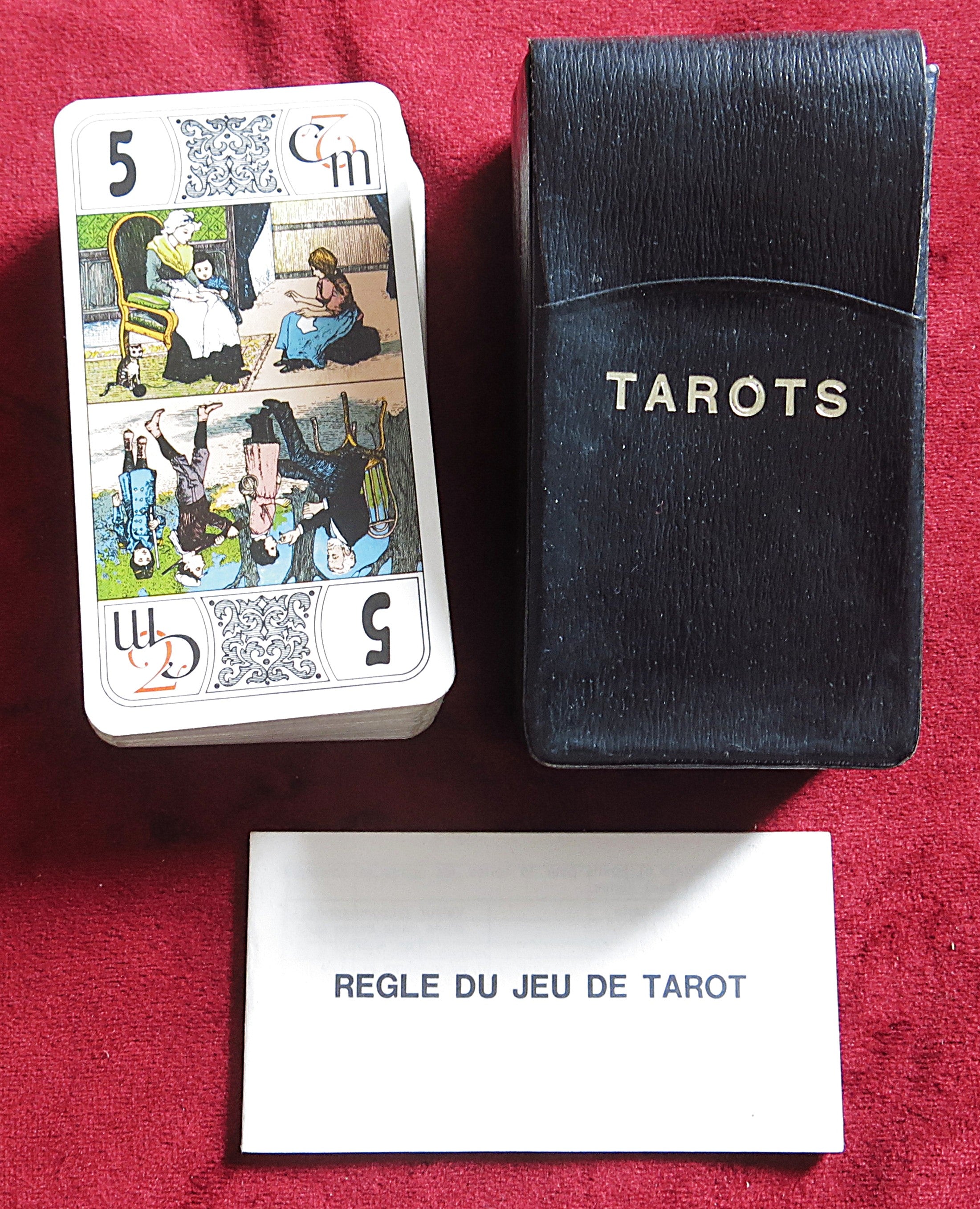 Un jeu de tarot français classique comprenant des cartes « à double scène » magnifiquement illustrées.
