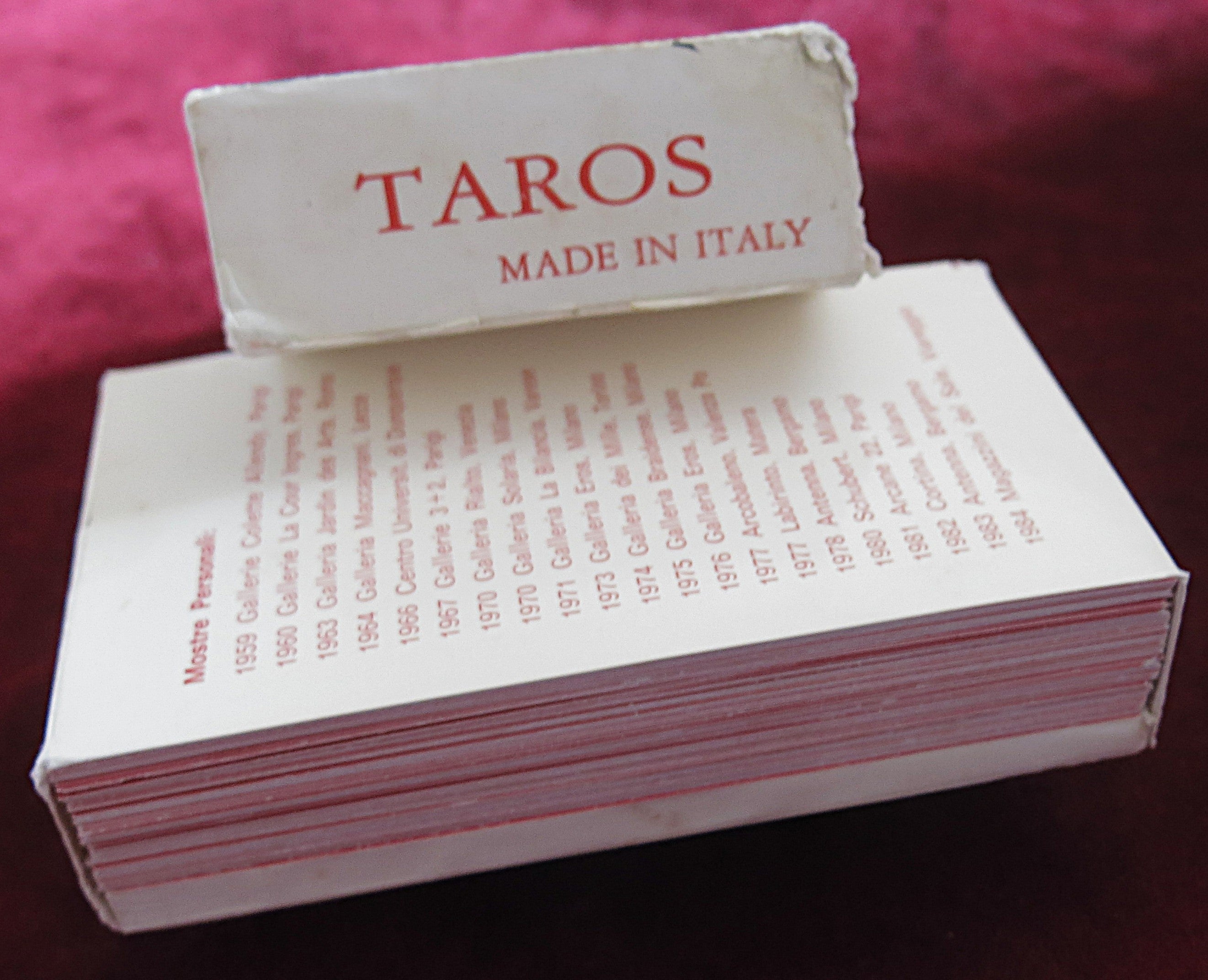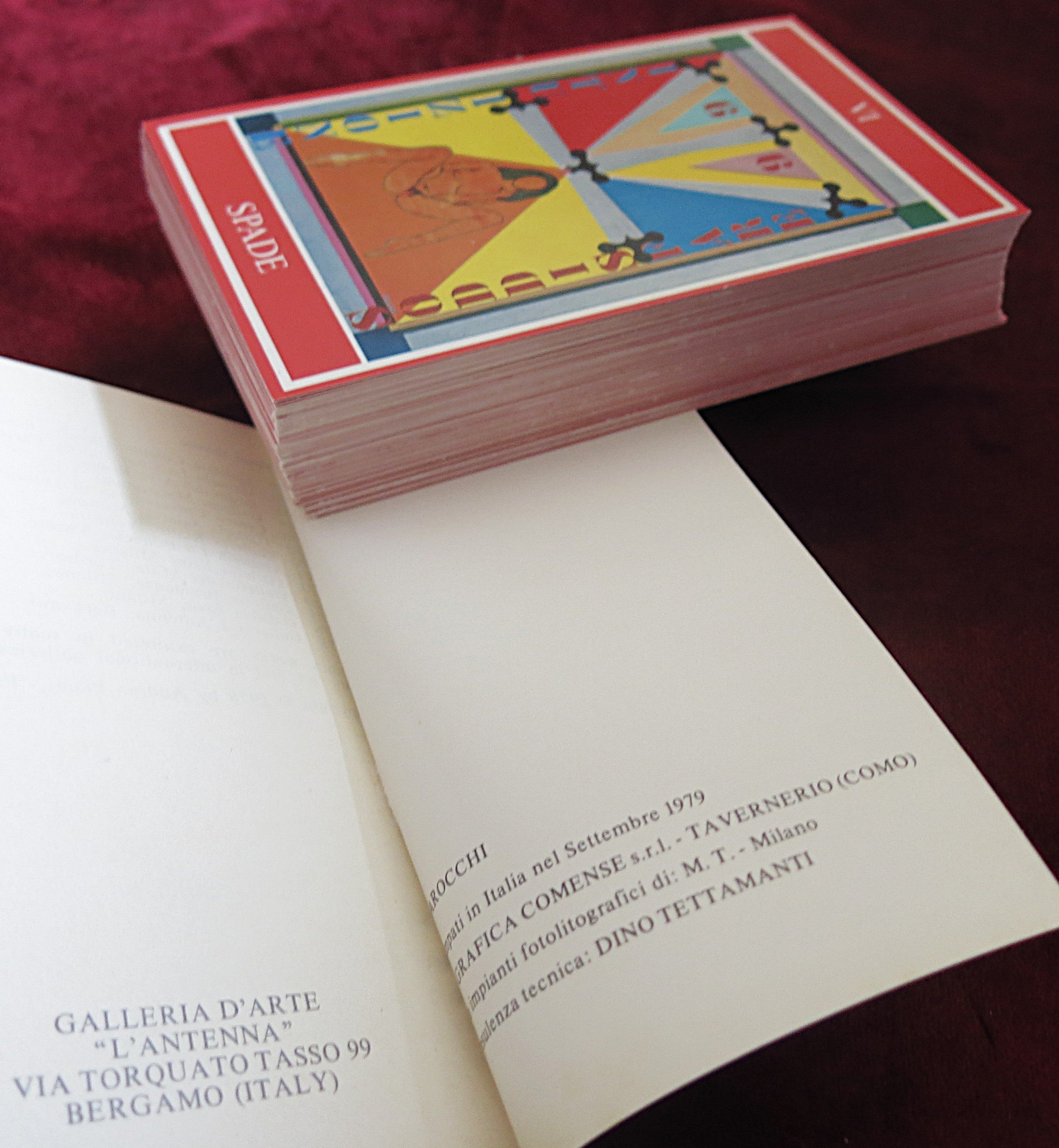 Imprimé par Grafica Comense (Côme) en collaboration avec Dino Tettamanti , ce jeu de cartes capture l' esprit d'avant-garde de l'art italien de la fin des années 1970 , où se rencontrent numérologie, géométrie et surréalisme.