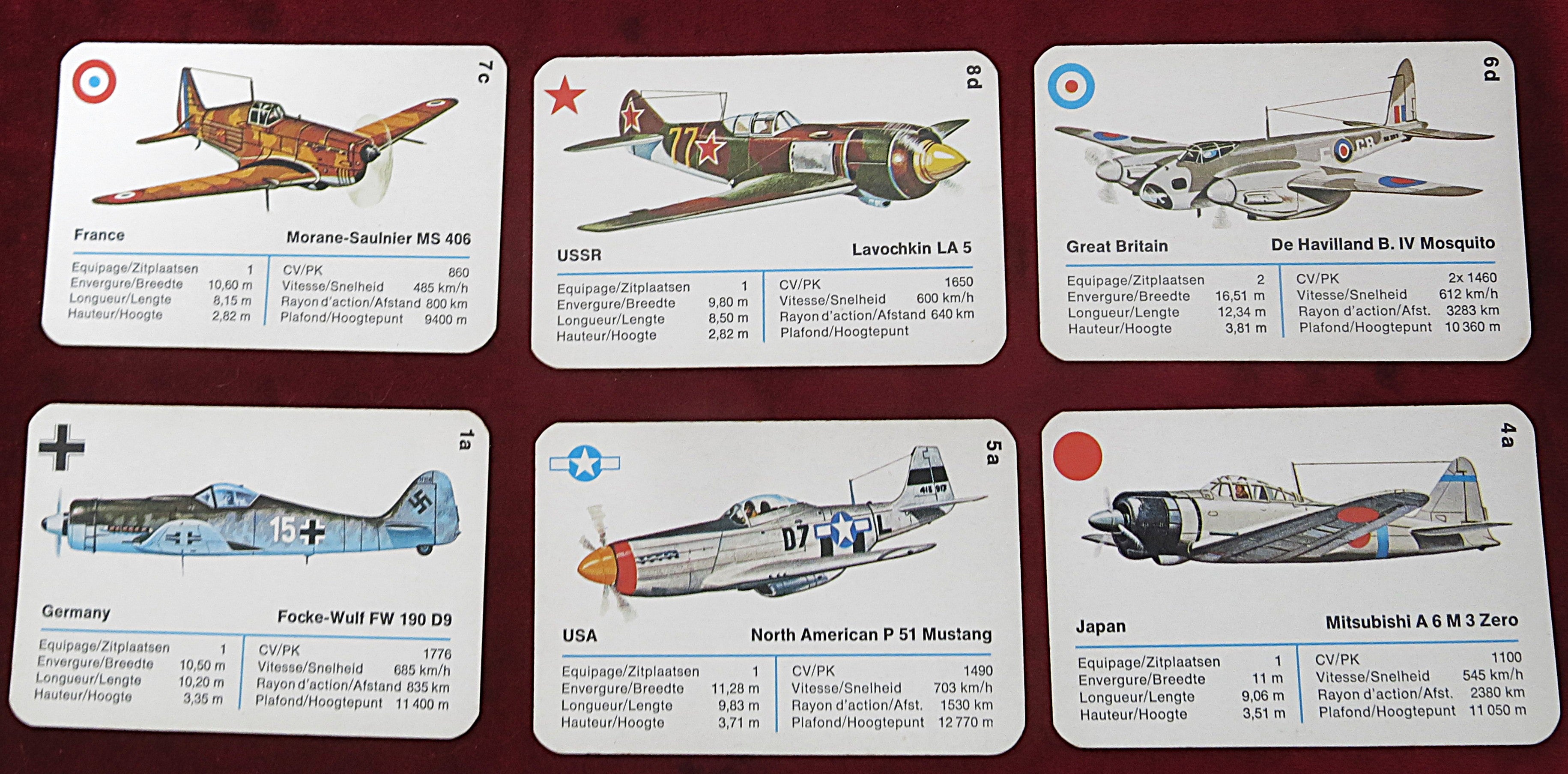 Un jeu de cartes d'aviation historique mettant en valeur les chasseurs et bombardiers légendaires de la Seconde Guerre mondiale - parfait pour les collectionneurs de jeux vintage, les passionnés d'aviation et les passionnés d'histoire.
