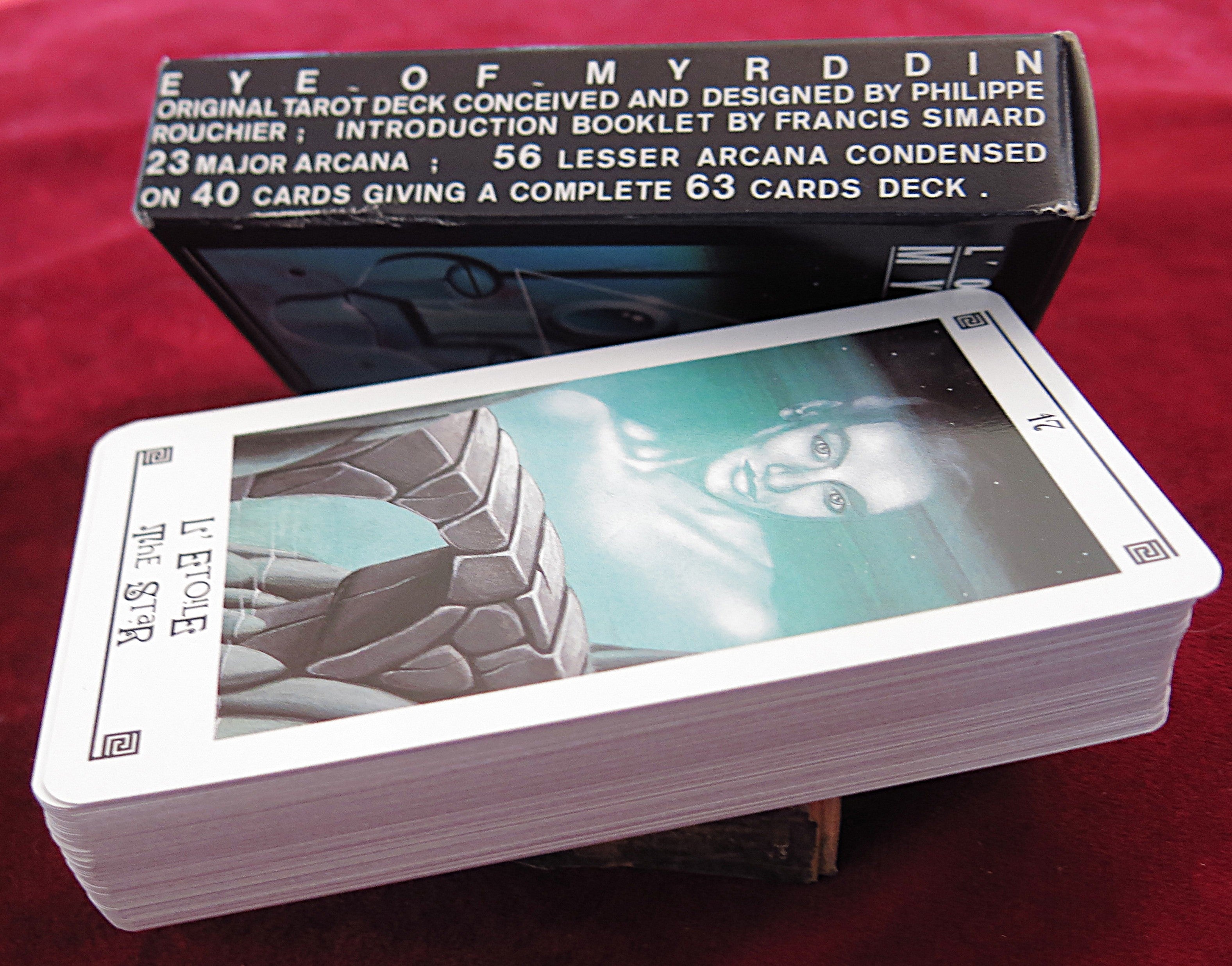 Le tarot L'Œil de Myrddin (The Eye of Myrddin), de Grimaud , est un jeu rare et surréaliste qui propose une approche futuriste et onirique de la divination.