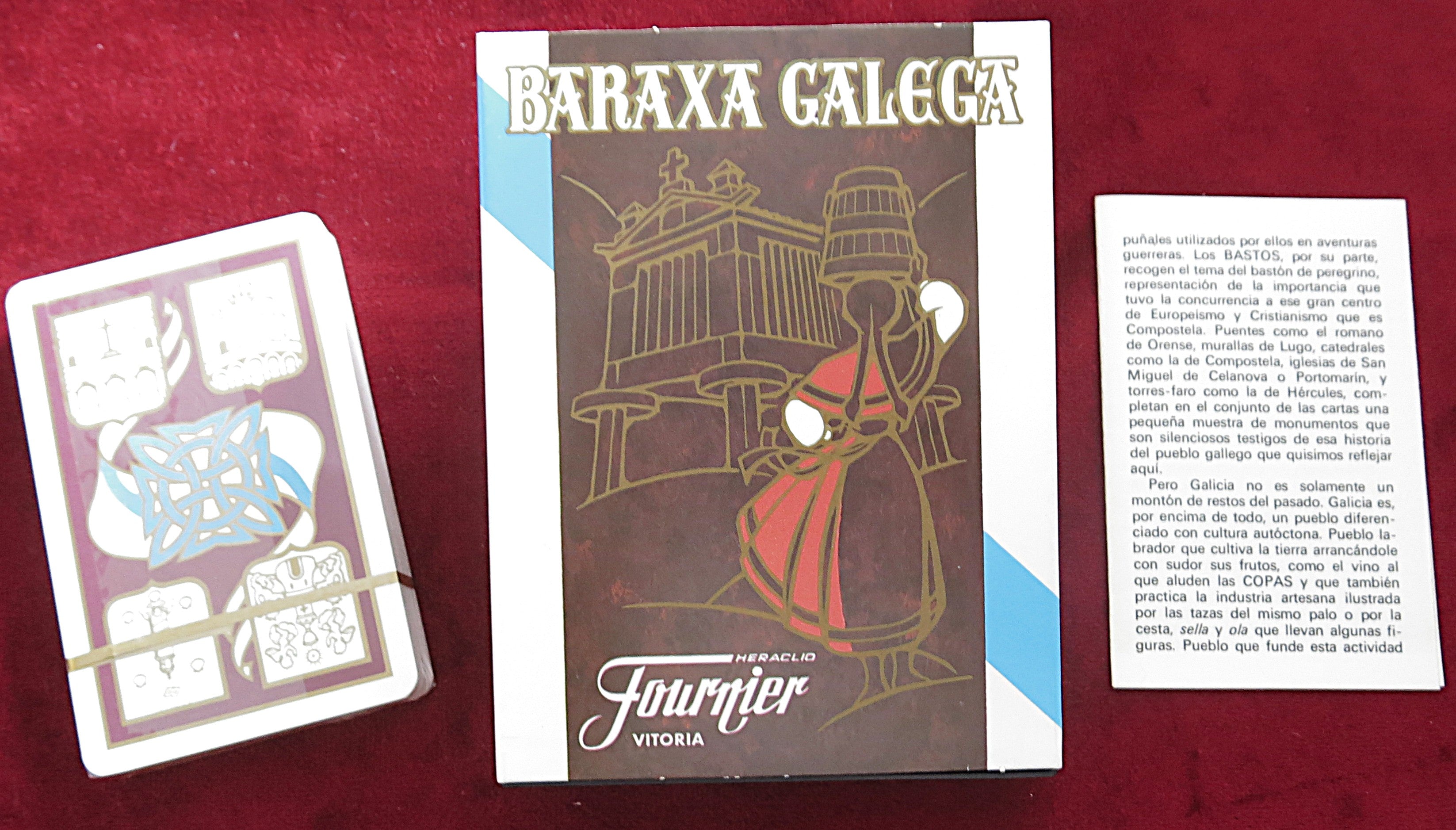 Ce rare jeu espagnol galicien de 40 cartes a été publié par Fournier en 1983. Conçu par F. Perez Llamosas , il présente des couleurs uniques inspirées de la culture galicienne :