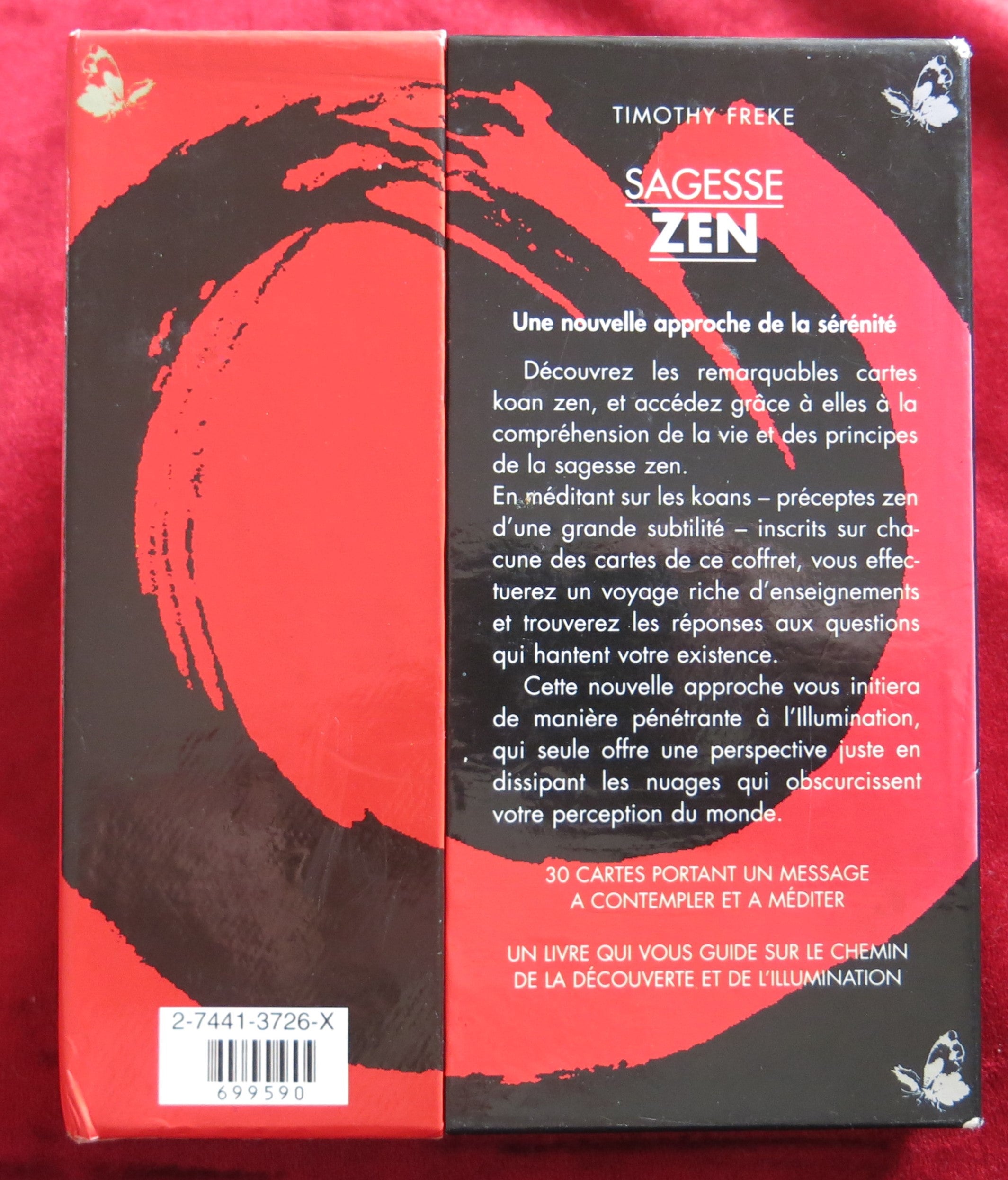 Un coffret divinatoire méditatif dédié à la sagesse du bouddhisme zen , créé par le philosophe et maître spirituel Timothy Freke . Cet élégant coffret invite à la contemplation grâce à 30 cartes koan — de courtes affirmations paradoxales qui éveillent la perspicacité — et un guide de 64 pages magnifiquement illustré.