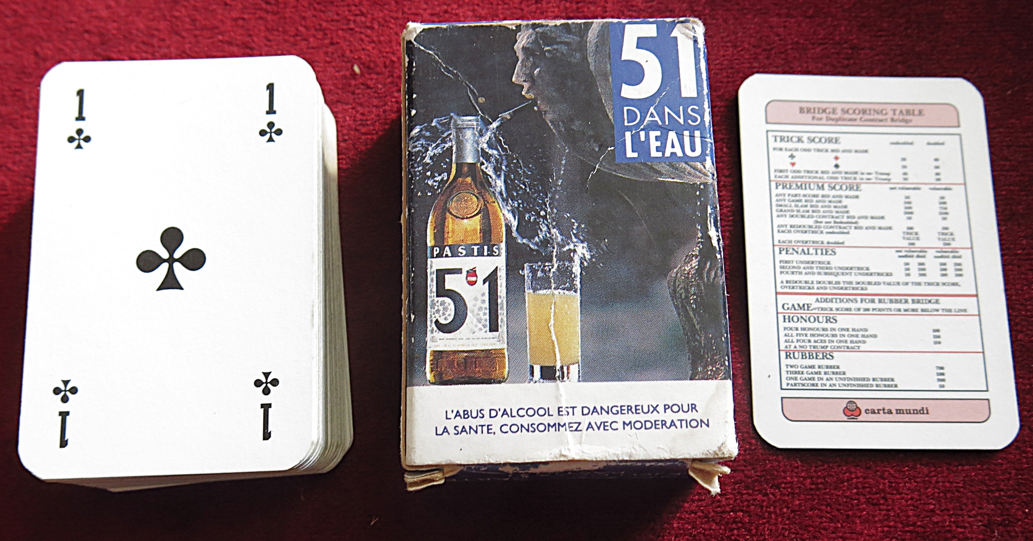 A charming and rare vintage advertising deck created for the French apéritif Pastis 51 under the slogan “51 dans l’eau”.